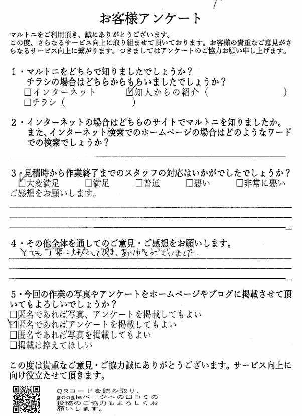 愛知県名古屋市千種区 K様 引越し及び撤去 2025/07/03 お客様よりアンケートを頂きました。 愛知県名古屋市千種区にて引越し及び撤去の手伝い作業をしました。 マルトニでは特殊清掃、遺品整理、お部屋の片づけから解体工事まで行っております。 愛知、岐阜、三重が対象可能エリアとなっております。 お困りごとがございましたら、どのようなことでもお気軽にお声がけください。 愛知 お客様アンケート