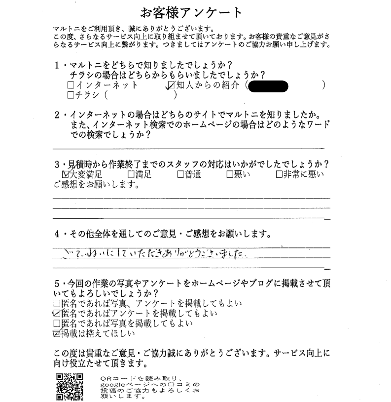 愛知県北名古屋市 O様 残置物撤去 2026/01/26 お客様よりアンケートを頂きました。 愛知県北名古屋市にて残置物撤去の手伝い作業をしました。 マルトニでは特殊清掃、遺品整理、お部屋の片づけから解体工事まで行っております。 愛知、岐阜、三重が対象可能エリアとなっております。 お困りごとがございましたら、どのようなことでもお気軽にお声がけください。 愛知 お客様アンケート