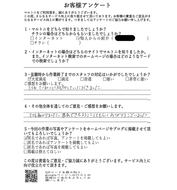 愛知県小牧市 T様 残置物撤去 2026/01/28 お客様よりアンケートを頂きました。 愛知県小牧市にて残置物撤去の手伝い作業をしました。 マルトニでは特殊清掃、遺品整理、お部屋の片づけから解体工事まで行っております。 愛知、岐阜、三重が対象可能エリアとなっております。 お困りごとがございましたら、どのようなことでもお気軽にお声がけください。 愛知 お客様アンケート